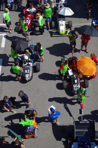 Keywords: racing car summer event parasols human sunshine wait formula student