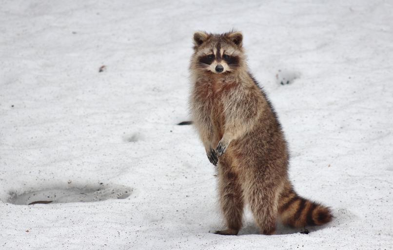 Keywords: racoon animal snow raccoon mammal wild wildlife nature cute