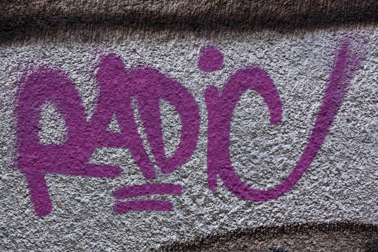 Keywords: radio graffiti wall grunge city home masonry facade youth creativity paint sprayer spray vandalism graphic graphically purple pink silver i like music radio gaga
