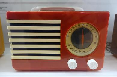 | Keywords: Radio Model 400 (FC-400) Patriot, Norman Bel Geddes, Emerson, Catalin case - Museum für Angewandte Kunst Köln - Cologne, Germany - DSC09461.jpg Industrial design right This protection period has passed and hence this work is now in the public domain 2015-11-28 10 33 40 own Daderot other versions cc-zero Radios in the Museum für Angewandte Kunst Köln Emerson Radio Model 400 | ||||