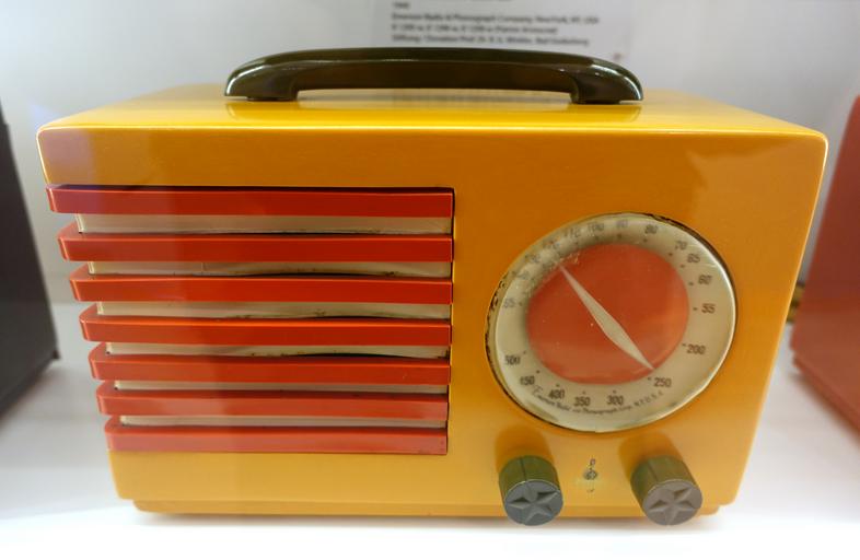 | Keywords: Radio Model 400 (FC-400), Norman Bel Geddes, Emerson, Catalin case - Museum für Angewandte Kunst Köln - Cologne, Germany - DSC09456.jpg Industrial design right This protection period has passed and hence this work is now in the public domain 2015-11-28 10 33 03 own Daderot other versions cc-zero Radios in the Museum für Angewandte Kunst Köln Emerson Radio Model 400 | ||||