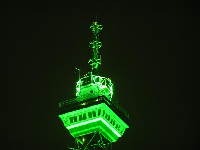 Keywords: radio tower great spire berlin night green illuminated lighting neon green neon light