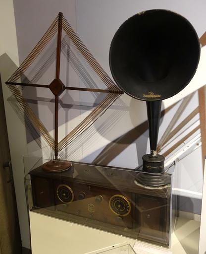 Keywords: Radiola Superheterodyne Radio Receiver with Loop Antenna and speaker horn, Rca, 1924 - National Electronics Museum - DSC00052.JPG en Exhibit in the National Electronics Museum 1745 West Nursery Road Linthicum Maryland USA All items in this museum are unclassified The museum permitted photography without restriction 2014-07-21 14 17 39 own Daderot cc-zero Uploaded with UploadWizard Radios in the National Electronics Museum RCA Radiola radios |
