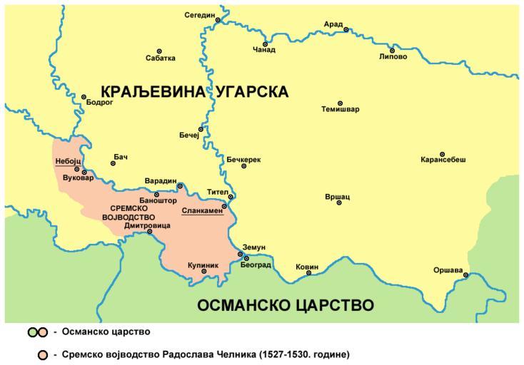 | Keywords: Radoslav celnik02 sr.png English historic map - Duchy of Syrmia of Radoslav Čelnik 1527-1530 - Serbian language version Serbian исто ијска ка та - С емско војводство Радослава Челника 1527-1530 године - ве зија на с пском језику 2009-03-16 own assumed PANONIAN References Veselin P Dželetović Poslednji srpski car - Jovan Nenad Poeta - Beograd 2007 Dr Aleksa Ivić Istorija Srba u Vojvodini Novi Sad 1929 Drago Njegovan Prisajedinjenje Vojvodine Srbiji Novi Sad 2004 Dr Dušan J Popović Srbi u Vojvodini knjiga 1 Novi Sad 1990 Vladimir Ćorović Ilustrovana istorija Srba knjiga četvrta Beograd 2006 The Times History of Europe Times Books 2002 http //www crohis com/ssrkulj2/mohac htm http //www hervardi com/images/slovenijeh039 jpg http //www croatia-in-english com/images/maps/1606 jpg Source and licence self made map by user PANONIAN Voivodeship of Syrmia of Radoslav Čelnik Maps of the Ottoman period in the history of Serbia Maps of the history of Vojvodina Maps of the history of Syrmia Maps of vassal states of the Ottoman Empire Maps in Serbian |