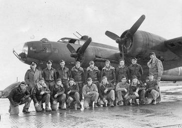 | Keywords: RAF Chelveston - 305th Bombardment Group - First raid on Germany Crew.jpg  Bomber crew and Ground crew of the 306th Bomb Group with their B-17 Flying Fortress Passed for publication 2 Feb 1943 Printed caption on reverse 'American Airmen Who Made First Daylight Raid On Germany Associated Press Photo Shows The crew and ground crew of the Fortress which made first raid on Germany in daylight Censor We have names and hometowns of all TET 254778 I 243 ' On reverse Associated Press US Army Press Censor ETO and US Army General Section Press Censorship Bureau Stamps United States Army Air Forces 1943 Second World War FRE 4403 5239 http //www americanairmuseum com/media/5239 This image was created and released by the Imperial War Museum on the http //www iwm org uk/corporate/privacy-copyright/licence IWM Non Commercial Licence Photographs taken or artworks created by a member of the forces during their active service duties are covered by Crown Copyright provisions Faithful reproductions may be reused under that licence which is considered expired 50 years after their creation photographs PD-USGov Uploaded with UploadWizard RAF Chelveston B-17 with aircrews 305th Bombardment Group United States Army Air Forces  |
