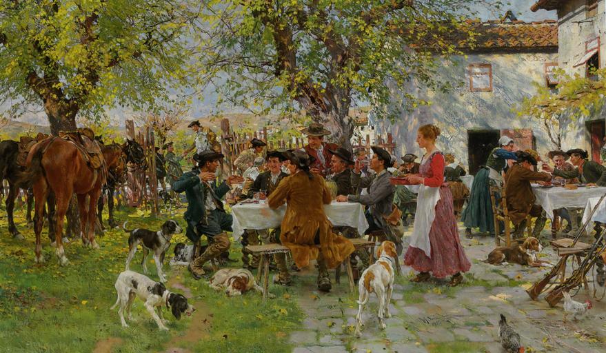 Keywords: Raffaello Sorbi - Il pranzo dei cacciatori.jpg Artwork Creator Raffaello Sorbi 1922 oil on canvas cm 59 6 99 8 Private collection place of discovery object history exhibition history credit line Raf Sorbi 1922 signature/date lower right ~ accession number place of creation 36788 “ http //www artrenewal org/artwork/004/1004/36788/Sorbi_Raffaello_The_Huntsmen_Lunch_1922_Oil_On_Canvas-huge jpg image 5287536 2282 44 “ http //www christies com/lotfinderimages/d52875/d5287536a jpg image <br /> italian title http //storiedellarte tumblr com/post/96253485916/raffaello-sorbi-il-pranzo-dei-cacciatori-the storiedellarte tumblr com Custom license marker 2015 03 30 PD-old-auto-1923 1931 Uploaded with UploadWizard Raffaello Sorbi Oil paintings of hunters Paintings of male hunters with dogs Taverns in art People eating in art Paintings of people sitting at tables outdoors 1922 oil on canvas paintings Paintings in private collections Paintings with signatures lower right Paintings with years of production artist |