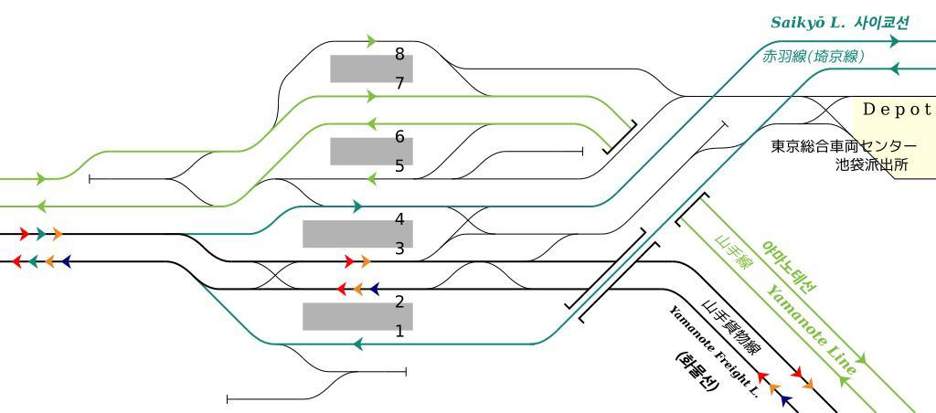 View Original:Rail Tracks map JR-E Ikebukuro Station.svg (1020x450)