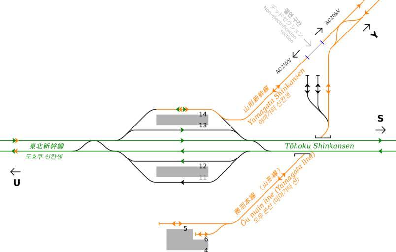 Keywords: Rail Tracks map JR-E Fukushima Station standard.svg JR East Fukushima Station Standard gauge tracks in Fukushima Fukushima Japan Legend n platform number Route information Y Yonezawa Yamagata Shinjō bound U Utsunomiya Ōmiya Ueno Tōkyō bound S Sendai Morioka Hachinohe Shin-Aomori bound Reference material Keisuke SODA Special issue - Shinzai Chokutsū Mini-shinkansen KOYUSHA CO LTD Japan Railfan Magazine Tetsudō Fan Japanese Magazine Vol 47-9 No 557 2007-9 Figure 2 - Page 37 http //www jreast co jp/estation/stations/1352 html EAST JAPAN RAILWAY official homepage Station Information retrieval - Fukushima Station Japanese 福島 福島市にあるJR 日 福島駅 構内配線略図(標準軌分) 参 文献: 祖田 介 特集:新 直 ・ミニ新幹線 ~山形・秋田新幹線の配線を探る~ 鉄道ファン 第47巻 第9号 ( 巻第557号)2007年9 号 交友社 2007年 37頁 図2 福島駅の配線略図 (主要部分) http //www jreast co jp/estation/stations/1352 html JR 日 公式ホームページ 駅情報 索 - 福島駅 - 駅構内図 (のりば番号) 凡例は駅配線図テンプレートを参照 Plan de voies de Gare de Fukushima Fukushima Fukushima Japon Created with Text Editor Tawashi2006 created from icons in Category Rail_tracks_map_template 2011-09-13 Tawashi2006 with http //kiritachinoboru tripod com/pdv2svg_en html pdv2svg Tawashi2006 validSVG Fukushima Station Fukushima Rail track diagrams of JR East train stations