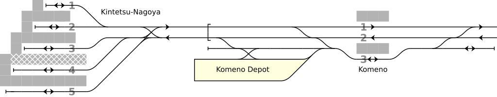 MAKE A MEME View Large Image Rail Tracks map Kintetsu Nagoya Station.svg Rail tracks map of Kintetsu Kintetsu Nagoya Station with Komeno Station Komeno Depot in Nakamura-ku Nagoya Aichi Pref Japan <br />Reference material Ryozo KAWASHIMA Zenkoku Tetsudo Jijyo Daikenkyu ...