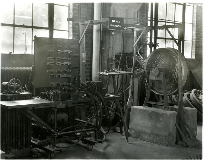 | Keywords: RailRAccidents 002.jpg The tread of the car wheel is heated electrically by the machine and the temperature and strain distribution are determined under the stated conditions for each wheel type and design National Institute of Standards and Technology National Institute of Standards and Technology PD-USGov-NIST PD-USGov National Bureau of Standards National Institute of Standards and Technology | ||||