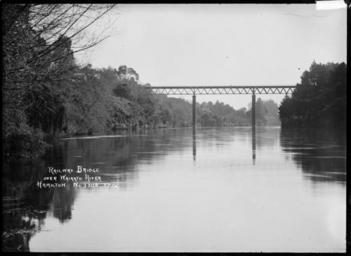 Keywords: blackandwhite monochrome outdoor photo border serene watercourse water black and white View of the Railway Bridge over the Waikato River at Hamilton. Photographed by Price Photo Co., firm of William Archer Price. Inscriptions: Inscribed - Photographer's title on negative -bottom left: Railway Bridge over Waikato River. Hamilton. No. 3308. P.P.Co. . Quantity: 1 b&w original negative(s). Physical Description: Dry plate glass negative 4.5 x 6.5 inches Railway Bridge over the Waikato River at Hamilton, circa 1910s. Price, William Archer, 1866-1948 :Collection of post card negatives. Ref: 1/2-001349-G. Alexander Turnbull Library, Wellington, New Zealand. natlib.govt.nz/records/22307969 View of the Railway Bridge over the Waikato River at Hamilton. Photographed by Price Photo Co., firm of William Archer Price. Inscriptions: Inscribed - Photographer's title on negative -bottom left: Railway Bridge over Waikato River. Hamilton. No. 3308. P.P.Co. . Quantity: 1 b&w original negative(s). Physical Description: Dry plate glass negative 4.5 x 6.5 inches Railway Bridge over the Waikato River at Hamilton, circa 1910s. Price, William Archer, 1866-1948 :Collection of post card negatives. Ref: 1/2-001349-G. Alexander Turnbull Library, Wellington, New Zealand. natlib.govt.nz/records/22307969 |