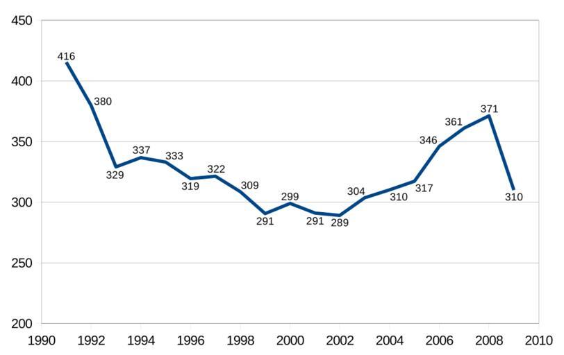 Keywords: Railway freight transport Germany tons.svg en Millions of tons of goods transported by railways in Germany since 1991 Data source destatis de Transportmenge in Millionen Tonnen im deutschen Eisenbahngüterverkehr seit 1991 Quelle destatis own MCMC 2010-02-07 Rail transport diagrams of Germany Railway freight statistics |