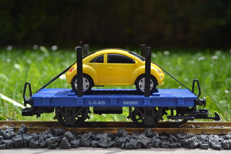 Keywords: railway lgb track 1 flat wagons autotransporter vw beetle model railway garden railway