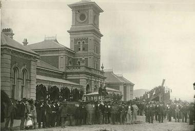 | Keywords: archives state records nsw staterecordsnsw newsouthwales blackandwhite railway station railwaystation albury murray celebrations ceremony people women children spectators geotagged geo:lon=-36.084257 geo:lon=36084257 geo:lat=146.924559 geo:lat=146924559 outdoor architecture monochrome black and white Albury Railway Station (NSW) - opening of Albury - Wodonga Link Dated: 14/06/1883 Digital ID: 17420_a014_a014000618 Rights: www.records.nsw.gov.au/about-us/rights-and-permissions We'd love to hear from you if you use our photos. Many other photos in our collection are available to view and browse on our website using Photo Investigator. Albury Railway Station (NSW) - opening of Albury - Wodonga Link Dated: 14/06/1883 Digital ID: 17420_a014_a014000618 Rights: www.records.nsw.gov.au/about-us/rights-and-permissions We'd love to hear from you if you use our photos. Many other photos in our collection are available to view and browse on our website using Photo Investigator. |