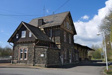 Keywords: Railway station Nistertal1.jpg Railway station Nistertal/Bad Marienberg formerly Erbach at the Oberwesterwaldbahn Altenkirchen-Limburg Germany Southern part Cultural heritage monument erected approx 1885 Location Bahnhofstraße Nistertal Westerwald Germany Bahnhof Nistertal/Bad Marienberg früher Erbach an der Oberwesterwaldbahn Altenkirchen-Limburg Empfangsgebäude mit Güterschuppen; Typenbau um 1885 Südseite Lage Bahnhofstraße Nistertal Westerwald Rheinland-Pfalz 2016-04-17 own el_tommo 50 632274 7 900715 cc-zero Train stations in Westerwaldkreis Cultural heritage monuments in Nistertal Uploaded with VicuñaUploader |
