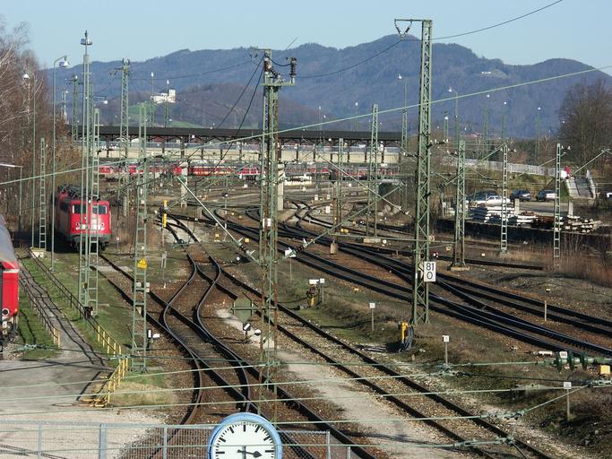 Keywords: railway station railway freilassing seemed gleise train traffic transport electric locomotive catenary