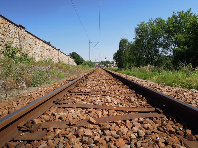 Keywords: railway track the land stone brown summer railway track journey sky blue tree