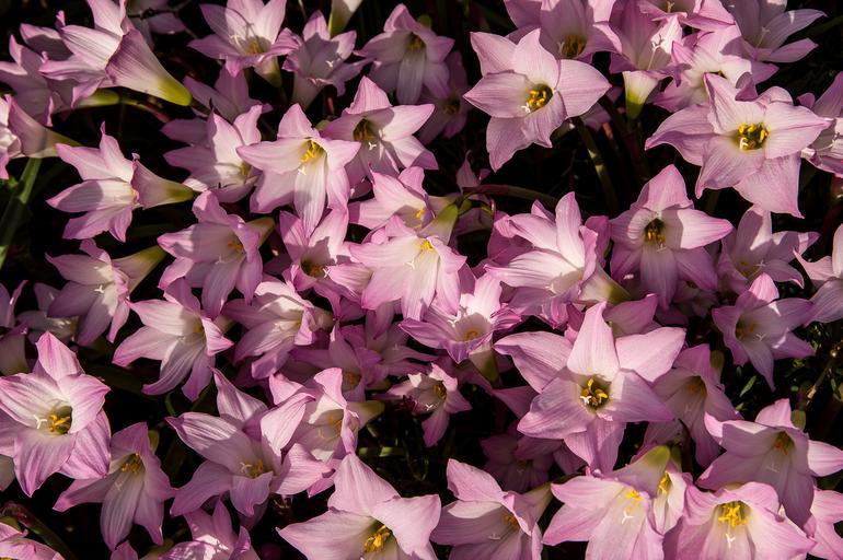 Keywords: rain lilies zephyranthes grandiflora pink bulb flower floral bloom blossom petals many garden