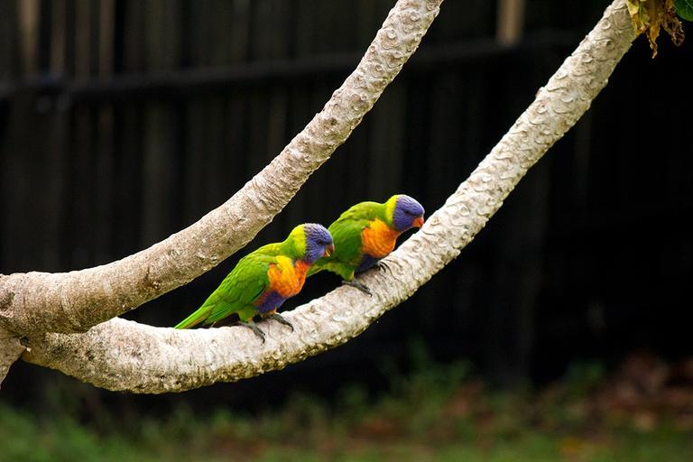 Keywords: rainbow parrot tree couple black colourful animal bird close colorful cute feather green wildlife lovebirds nature
