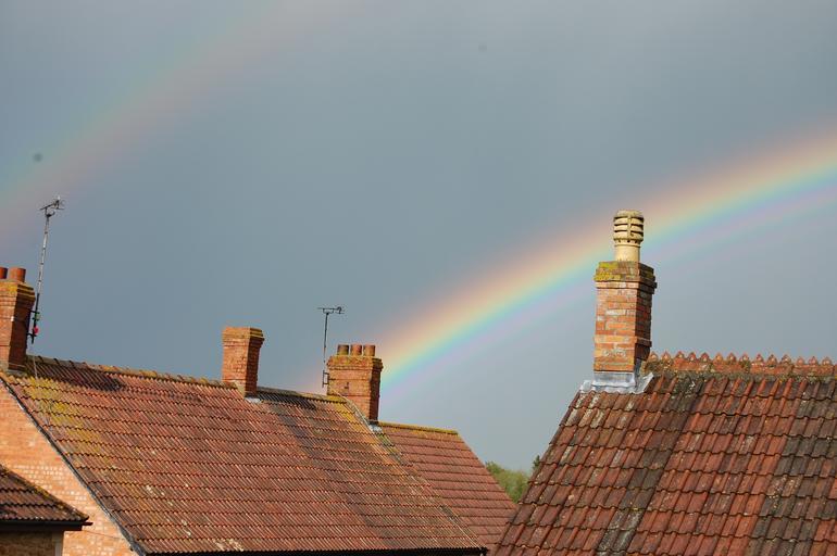 Keywords: rainbow roof chimney sky roofs