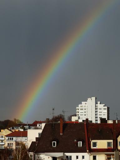 Keywords: rainbow weather phenomenon sky rain city homes rainbow colors spre spectrum refraction natural phenomenon spectacular farbenspiel
