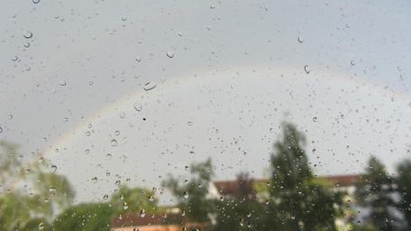 Keywords: rainbow wet landscape rain drip window