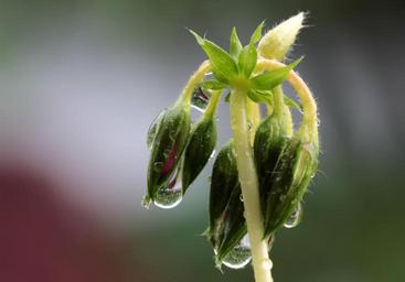 Keywords: raindrop drip drop of water wet beaded closed buds a geranium mirroring