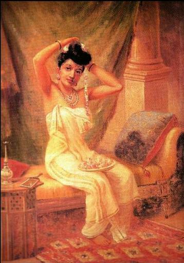 Keywords: Raja Ravi Varma, Lady in Her Dressing Room (1873).jpg Artwork Creator Raja Ravi Varma Lady in Her Dressing Room A w Kerala Keralaite lady in dressing room adorning her hair with a garland of jasmine തന്റെ ചമയമുറിയിലിരുന്ന് മുടിയിൽ വി മുല്ല മുല്ലപ്പൂ ചൂടുന്ന മലയാളി വനിത 1873 Oil on canvas w Kowdiar Palace Thiruvananthapuram Kerala വി കവടിയാർ കൊട്ടാരം തിരുവനന്തപുരം കേരളം object history credit line accession number http //www museumsyndicate com/item php item 25496 Malayalam loves Wikimedia event 2011 April PD-Art-100 Portraits of women of Kerala by Raja Ravi Varma Female armpits in art Art of India in the Kowdiar Palace 1873 paintings by Raja Ravi Varma |