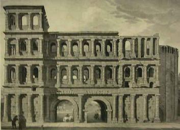 | Keywords: Ramboux - Porta Nigra 1.jpg  en View of the Porta Nigra in Trier from the south de Ansicht der Porta Nigra in Trier von Süden fr Vue de la Porta Nigra de Trèves du sud 1824 http //www preussen-am-rhein de/bilder/facette_05 jpg Creator Johann Anton Ramboux PD-old-100 Johann Anton Ramboux History_of_Porta_Nigra Historic_views_of_Trier |