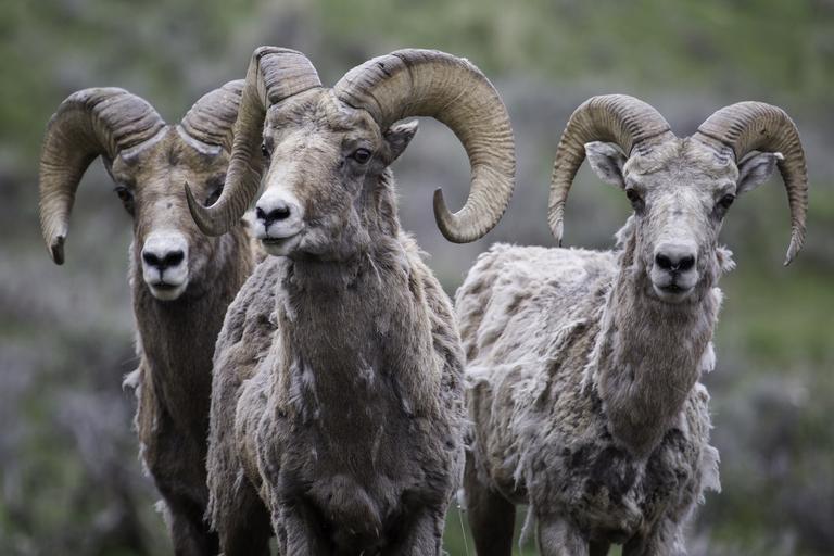 Keywords: rams bighorn sheep wildlife sheep males nature horns outdoors wild portrait looking park