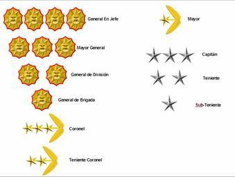 | Keywords: Rango Oficiales Venezuela.jpg en Army National Guard Air Force and Militia Officer Ranks in Venezuela es Rangos de Oficiales del Ejercito Guardia Nacional Fuerza Aerea y Milicia en Venezuela own Gilbertobm 2009-02 Military rank insignia of Venezuela |