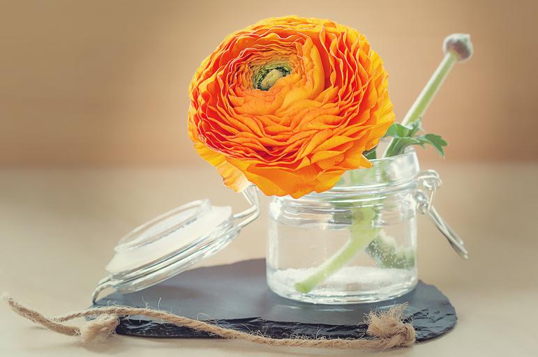 Keywords: ranunculus flower petals blossom bloom orange spring flower vase close