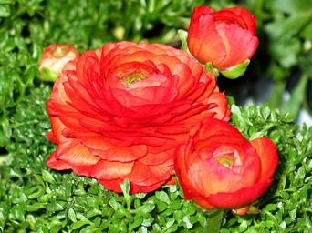 Keywords: ranunculus flowers flower spring nature bright ranunculus flower petals still life easter orange green bloom garden plant flora filigree awakening