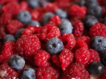 Keywords: raspberries blueberries berries fruits sweet red blue delicious vitamins healthy