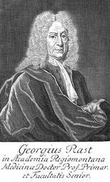 Keywords: Rast Georg.jpg en Georg Rast 1651-1729 Physician from Germany de Georg Rast 1651-1729 deutscher Mediziner Deutsche Acta Eruditorum 1730 150 T ungez Bl vor S 381 Martin Bernigeroth 1731 http //idrz18 adw-goettingen gwdg de/portraets_detail/rast html PD-old-100 Physicians from Germany 1651 births 1729 deaths |