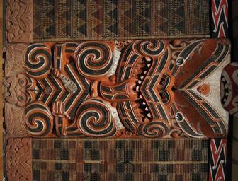 Keywords: Rautao.jpg Poupou wall post depicting Rautao an ancestor of the Ngāti Maru people Thames New Zealand This wall post is from Hotunui a carved meeting house built in 1878 by Ngāti Awa carvers from Whakatane as a wedding present when Mereana Mokomoko a woman of their tribe married Wīrope Hōterene Taipari a Ngāti Maru leader The house has been in the Auckland War Memorial Museum since about 1920 The carving is flanked by decorative tukutuku panels 2006-10-23 own assumed Kahuroa Photo by uploader 23 October 2006 no rights reserved Kahuroa 04 49 31 October 2006 UTC Maori wood carving Tukutuku panels Files by User Kahuroa Hotunui meeting house |