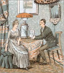 Keywords: Ravnen1890page380.jpg Pareret -- Sig mig Frøken Marie har De ikke en Broder -- Jo en rigtig køn Broder har jeg -- Aah saadan en Svoger kunde jeg ønske mig -- Saa-aa De har maaske en rigtig smuk Søster Matched -- Tell me Miss Marie do you not have a brother -- Yes I have a very handsome brother -- Oh such a brother-in-law I should wish to have -- Is that so Perhaps you have a very pretty sister Ravnen Ravnen 1890 PD-old Flirting Jokes Ravnen 1890 cartoons 1890 in Denmark Couples in art Caricatures of couples Flirting in art |