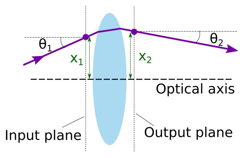 | Keywords: RayTransferMatrixDefinitions.svg en In ray transfer ABCD matrix analysis an optical element here a thick lens gives a transformation between <math> x_1 \theta_1 </math> at the input plane and <math> x_2 \theta_2 </math> when the ray arrives at the output plane 2016-04-13 own Sbyrnes321 other versions cc-zero Optics diagrams |