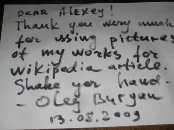 Keywords: Razreshenie ot Olega.jpg en Agreement of the author's Oleg Buryan to the placement of these files images under this license http //en wikipedia org/wiki/Buryan_Oleg ru Раз ешение авто а Олега Бу ьяна на азмещение этих фотог афий под данной лицензией http //en wikipedia org/wiki/Buryan_Oleg uk Дозвіл авто а Олега Бу 'ян на озміщення цих фотог афій під даною ліцензією http //en wikipedia org/wiki/Buryan_Oleg own Chelovechek 2009-08-13 Buryan's art work Comparative Buryanology |