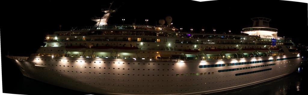 | Keywords: RCL Sovereign of the Seas Panorama.jpg Royal Caribbean Cruise Liner at night in port at Nassau Bahamas stitched three photos Taken from the Carnival Cruise Line Fascination which was docked alongside own 02/10/2008 Robpinion Ships in Nassau Bahamas Sovereign of the Seas ship 1987 Ships at night |