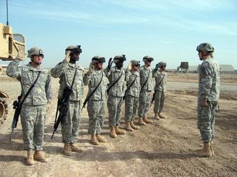 Keywords: Re Enlistment DVIDS17389.jpg en Seven Soldiers from Alpha Battery 3-29 Field Artillery 3rd Heavy Brigade Combat Team 4th Infantry Division Task Force Band of Brothers stood together to reenlist bringing the brigade's year-to-date total to 270 Col Brian D Jones commander 3rd HBCT who gave the oath of enlistment 2006-03-05 Staff Sgt Sheryl Lawry https //www dvidshub net/image/17389 17389 2006-03-25 13 28 FORWARD OPERATING BASE WARHORSE IQ PD-USGov Forward Operating Base Warhorse Images from DoD uploaded by Fæ |