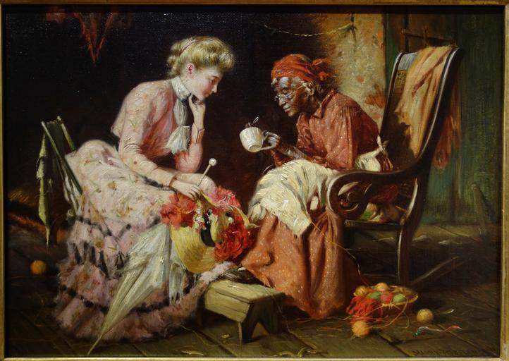 | Keywords: Reading Tea Leaves by Harry Herman Roseland, 1906, oil on canvas - New Britain Museum of American Art - DSC09351.JPG en Exhibit in the New Britain Museum of American Art New Britain Connecticut USA This artwork is in the public domain because the artist died more than 70 years ago The museum permitted photographs of this exhibit without restriction 2013-06-27 12 32 17 own Daderot PD-old-70-1923 cc-zero Paintings in the New Britain Museum of American Art Uploaded with UploadWizard Harry Roseland |