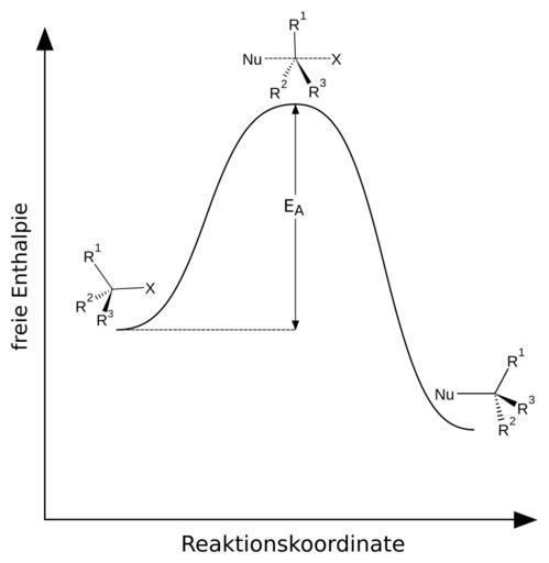 | Keywords: Reaktionskoordinate der SN2-Reaktion.svg ValidSVG reaction coordinate of the S<sub>N</sub>2 reaction a Nucleophilic substitution in german de Reaktionskoordinate der S<sub>N</sub>2-Reaktion eine Art der Nukleophilen Substitution 2012-07-26 own inkscape Minihaa cc-zero Uploaded with UploadWizard SN2 reactions Potential energy |