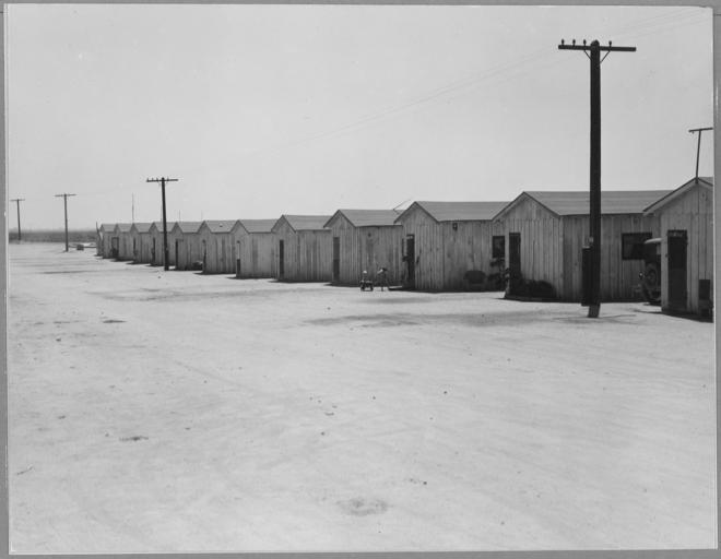 | Keywords: Rear Shafter, Kern County, California. Company housing for potato and cotton pickers on U.S. Highway . . . - NARA - 521714.jpg Scope and content Full caption reads as follows Rear Shafter Kern County California Company housing for potato and cotton pickers on U S Highway 99 General notes 521714 Local identifier 83-G-41470 Department of Agriculture Bureau of Agricultural Economics Division of Economic Information ca 1922 - ca 1953 NARA-Author Lange Dorothea 1895-1965 Photographer 1372774 <br /> Still Picture Records Section Special Media Archives Services Division NWCS-S National Archives at College Park 8601 Adelphi Road College Park MD 20740-6001 08/1938 Record group Record Group 83 Records of the Bureau of Agricultural Economics 1876 - 1959 Record group ARC 412 Photographic Prints Documenting Programs and Activities of the Bureau of Agricultural Economics and Predecessor Agencies compiled ca 1922 - ca 1947 documenting the period ca 1911 - ca 1947 Series ARC 521048 File unit File unit ARC Variant control numbers NAIL Control Number NWDNS-83-G-41470 Other versions <gallery> File Rear_Shafter _Kern_County _California _Company_housing_for_potato_and_cotton_pickers_on_U S _Highway_ _ _ _-_NARA_-_521714 tif tif File Rear_Shafter _Kern_County _California _Company_housing_for_potato_and_cotton_pickers_on_U S _Highway_ _ _ _-_NARA_-_521714 jpg jpg </gallery> NARA-cooperation PD-USGov Dorothea Lange |