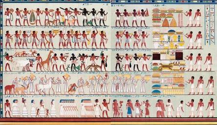 Keywords: Rechmire-Tributszene.jpg en The tomb of Rekhmire the vizier the highest ranking official under the pharaohs Tuthmosis III and Amenophis II New Kingdom during a period when Egypt ™s empire stretched to its farthest extent and was at the peek of her prosperity Representation from foreigners bringing trades tibutes and taxes to the tomb owner The people of Punt who bring incense trees baboons monkeys and animal hides The people of Kefti probably Crete carrying pots and cubs The Kushites Nubians who bring animals of equatorial Africa giraffes leopards baboons monkeys and dogs offering ivory animal hides and gold People from Syria Slaves George Alexander Hoskins Travels in Ethiopia above the 2nd cataract London Longman 1835 George Alexander Hoskins 1802-1863 1835 Tomb of Rekhmire Mammals in Ancient Egypt ~d Leopard fur-skins in art Fur clothing of native people of Egypt PD-old-100 |