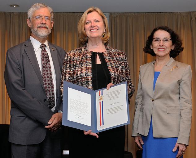 Keywords: Recognizing outstanding mentors for their contributions to STEM education and the future workforce.jpg Washington D C Pictured above 2013 PAESMEM recipient Sandra Petersen professor and associate graduate dean Veterinary and Animal Science at the University of Massachusetts Amherst center with John P Holdren assistant to the President for science and technology and director of the White House Office of Science and Technology Policy left and NSF Director France A Córdova right Petersen is recognized as the director of a consortium of research colleges and minority-serving institutions that has tripled enrollments of underrepresented groups in STEM fields All are serving from http //myvetcareer com/ vet tech salary 2015-11-12 https //www flickr com/photos/nsf_beta/22958305132/ National Science Foundation other versions National Science Foundation https //flickr com/photos/37157086 N02/22958305132 2016-05-08 04 51 04 United States Government Work PD-USGov Presidential Award for Excellence in Science Mathematics and Engineering Mentoring France Cordova John Holdren |