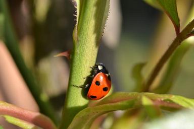 Keywords: red black ladybird close-up nature insects leaf green coleoptera