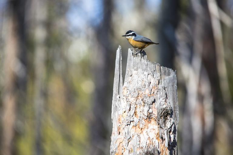 Keywords: red-breasted nuthatch bird perched tree wildlife nature wild forest