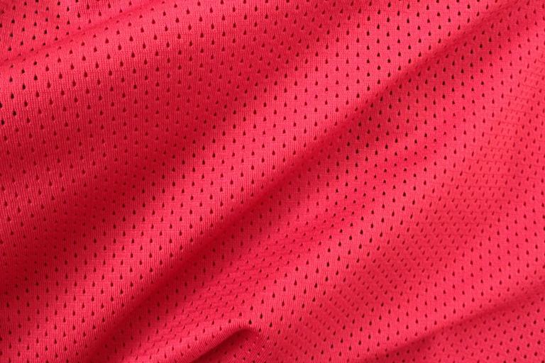 Keywords: red clothes materials textiles backgrounds wrinkles dots tiny holes surfaces smooth colorful bright dresses clothing
