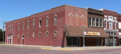 | Keywords: Red Cloud NW corner 3rd and Webster 1.JPG Red Cloud Nebraska The block is part of Red Cloud's Main Street Historic District which is listed in the National Register of Historic Places The red brick building on the corner is the Miner Brothers Store built in 1883; it is separately listed in the NRHP To its right north the dark brown brick building with four rectangular windows is the Jones and Goble Building - People's Bank also built in 1883 The rightmost northernmost building fully visible in the photo is the First National Bank Building built in 1884 own Ammodramus 2010-05-31 Cc-zero Pictures by Ammodramus Taken with Panasonic Lumix DMC-FZ20 Main Street Historic District Red Cloud Nebraska |